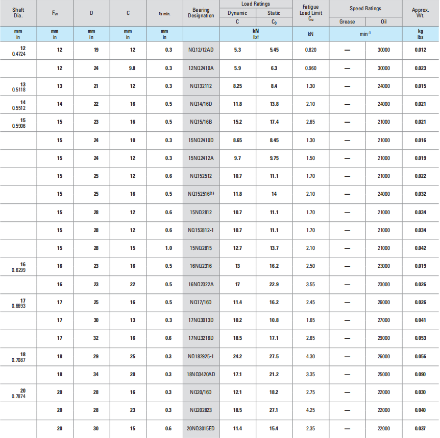 17 | 25 | 16 | 0.5 | NQ17/16D | 11.4 | 16.2 | 2.45 | — | 26000 | 0.026 |
