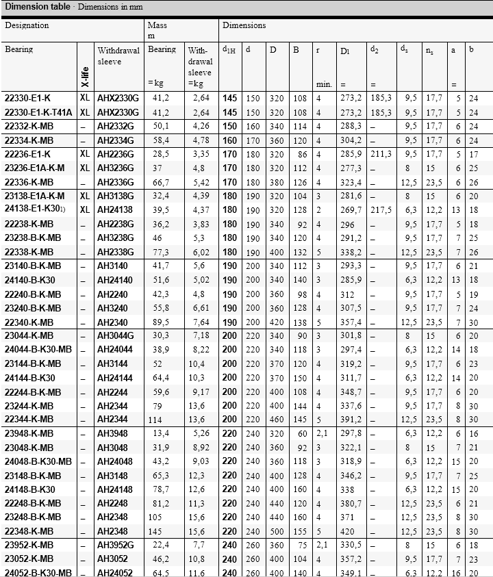 Bearing X-life Withdrawal sleeve Bearing With-   drawal sleeve =kg d1H d D
