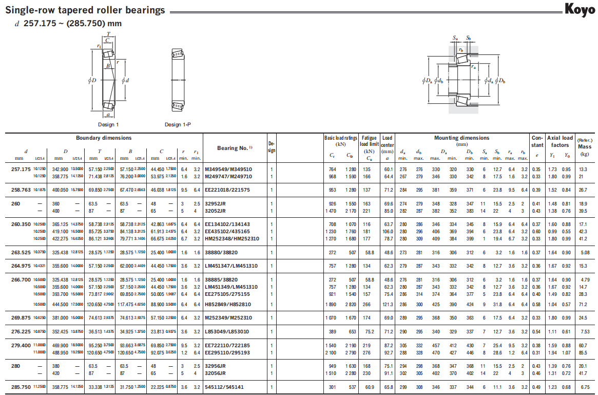 Koyo tapered roller bearings whose bearing numbers are suffixed by “J” are precision ground in accordance with the ISO 355 (Sub-unit, Metric Series) specifying