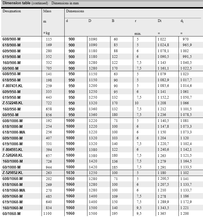 (Z-5..KL, F-8..KL) are used, for example, as axial bearings in roll stands. Their section height is normally matched to the associated radial bearing.