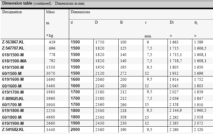 (Z-5..KL, F-8..KL) are used, for example, as axial bearings in roll stands. Their section height is normally matched to the associated radial bearing.