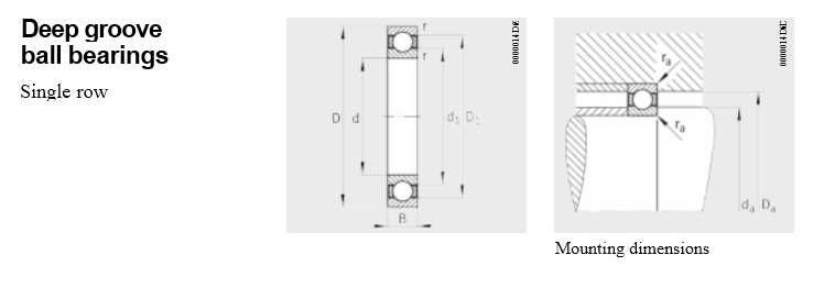 Single row deep groove ball bearings are of a simple design, robust in operation and easy to maintain. Due to their low frictional torque, deep groove ball bearings are suitable for high speeds. Deep groove ball bearings with standardised main dimensions and standardised designations (DIN 625-1) are used, for example, in gearboxes, electric motors, converter drive units and roll stands. Deep groove ball bearings with non-standardised designations