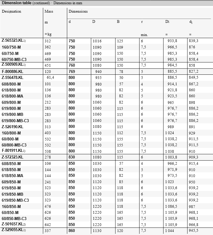 (Z-5..KL, F-8..KL) are used, for example, as axial bearings in roll stands. Their section height is normally matched to the associated radial bearing.