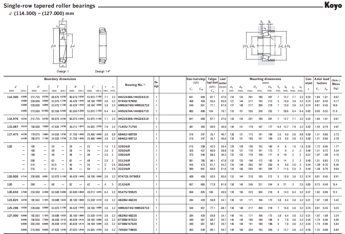 KOYO  Single-row tapered roller bearings, Able to carry radial and axial load in one direction simultaneously. Combined radial and axial load can be also accommodated. Suitable for heavy load and impact load. The larger the contact angle (α) is, the greater the bearing resistance to axial load.