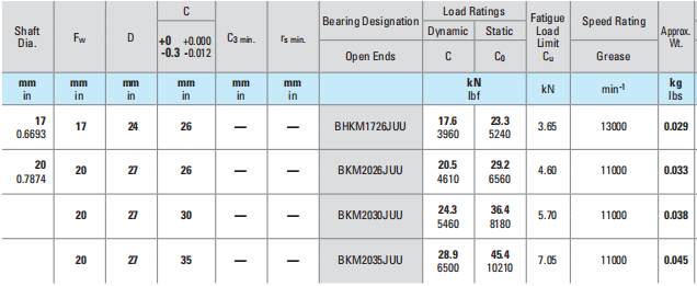 Fw | D | Bearing Designation | Load Batings | Approx.