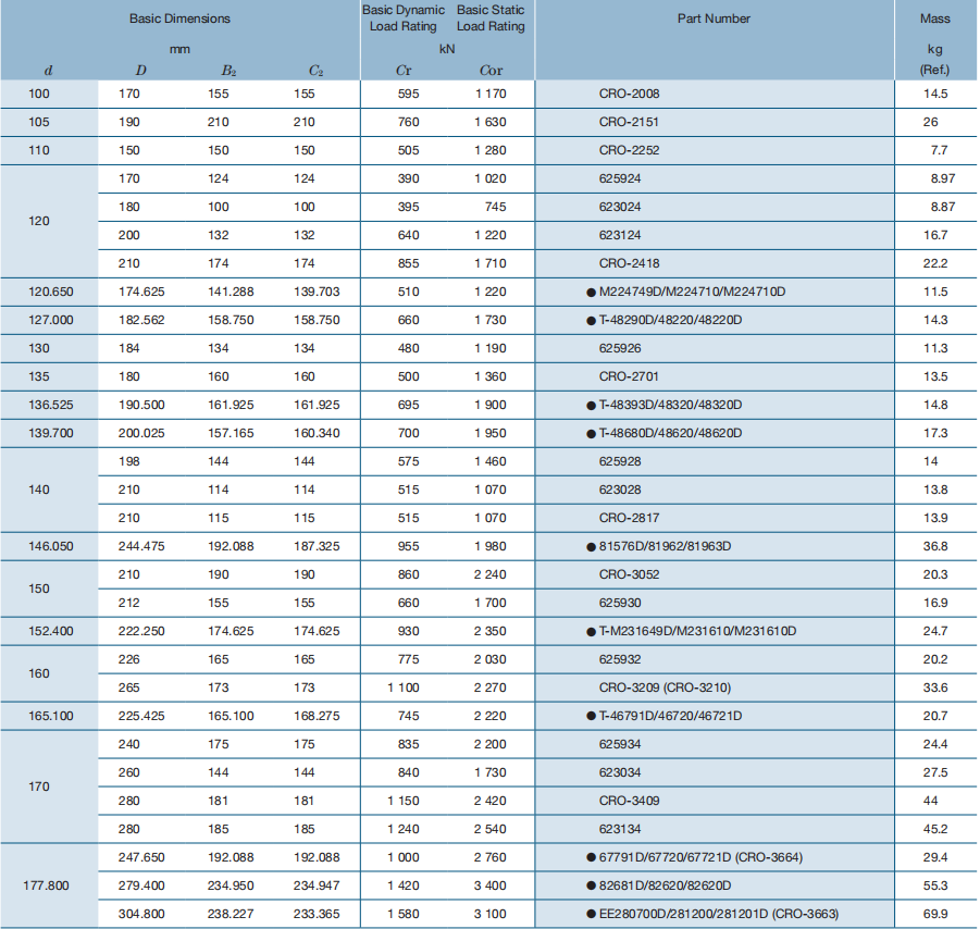 | Basic Dynamic Basic Static Load Rating Load Rating kN Cr Cor |