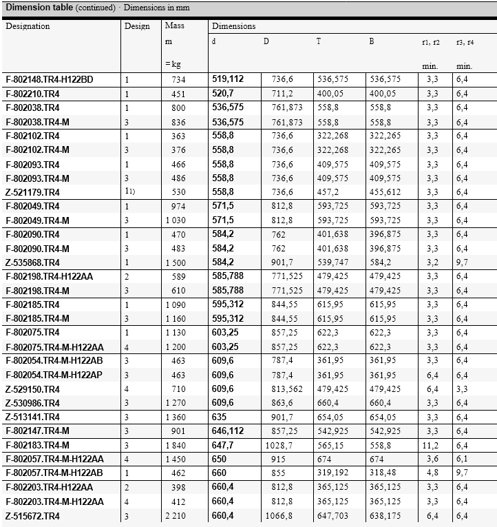 FAG  Four-row tapered roller bearings comprise solid bearing rings and tapered roller and cage assemblies. They are suitable for axial loads in both directions and high radial loads.