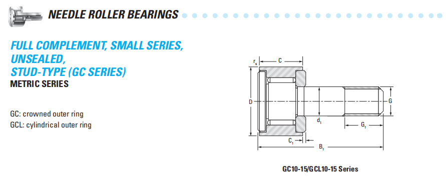 Stud-type track rollers are available in various open designs, as well as with lip contact seals or metal shields.