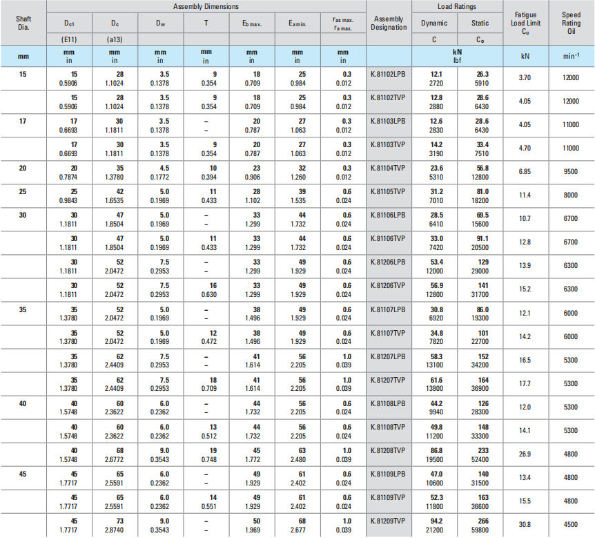 45 65 K.81109TVP 0.035 45 47 WS.81109 GS.81109