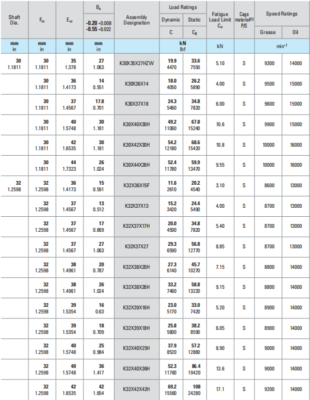 KOYO Radial needle roller and cage assemblies have a steel cage that provides both inward and outward retention for the needle rollers. The designs provide maximum cage strength consistent with the inherent high load-ratings of needle roller bearings. Accurate guidance of the needle rollers by the cage bars allows for operation at high speeds. Needle roller and cage assemblies have either one or two rows of needle rollers.