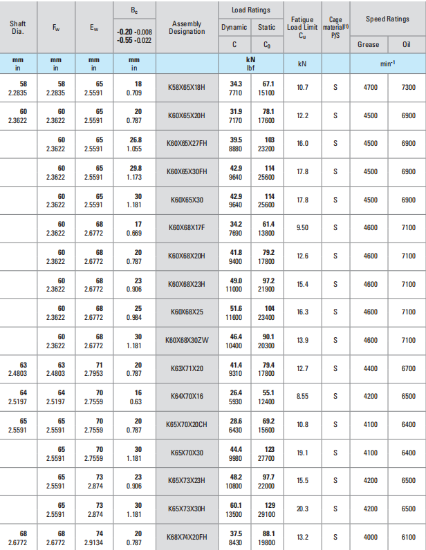 KOYO Radial needle roller and cage assemblies have a steel cage that provides both inward and outward retention for the needle rollers. The designs provide maximum cage strength consistent with the inherent high load-ratings of needle roller bearings. Accurate guidance of the needle rollers by the cage bars allows for operation at high speeds. Needle roller and cage assemblies have either one or two rows of needle rollers.