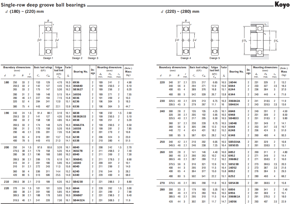 • KOYO Large Size Deep groove ball bearings can accommodate radial load and axial load in both directions.