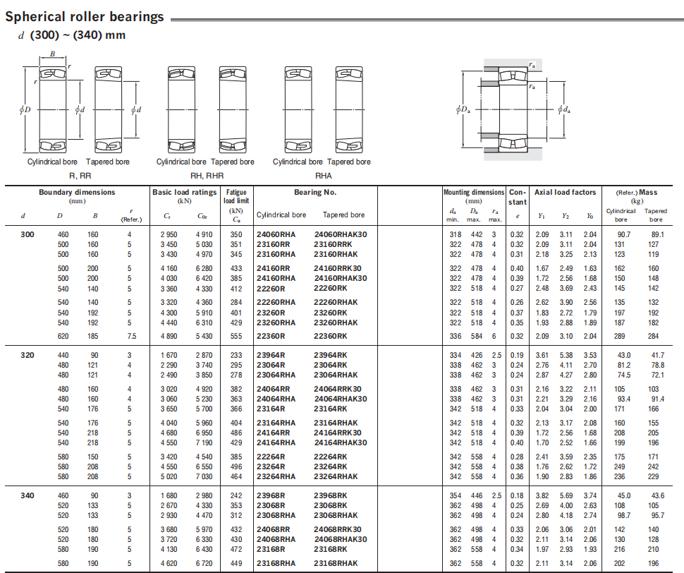 | 300 | 460 | 160 | 24060RHA | 24060RHAK30 23160RRK | 90.7 | 89.1 | |