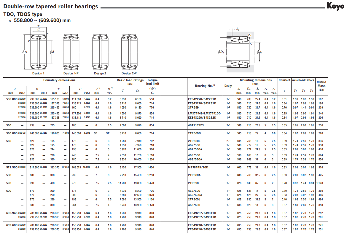 KOYO  Single-row tapered roller bearings, Able to carry radial and axial load in one direction simultaneously. Combined radial and axial load can be also accommodated. Suitable for heavy load and impact load. The larger the contact angle (α) is, the greater the bearing resistance to axial load.