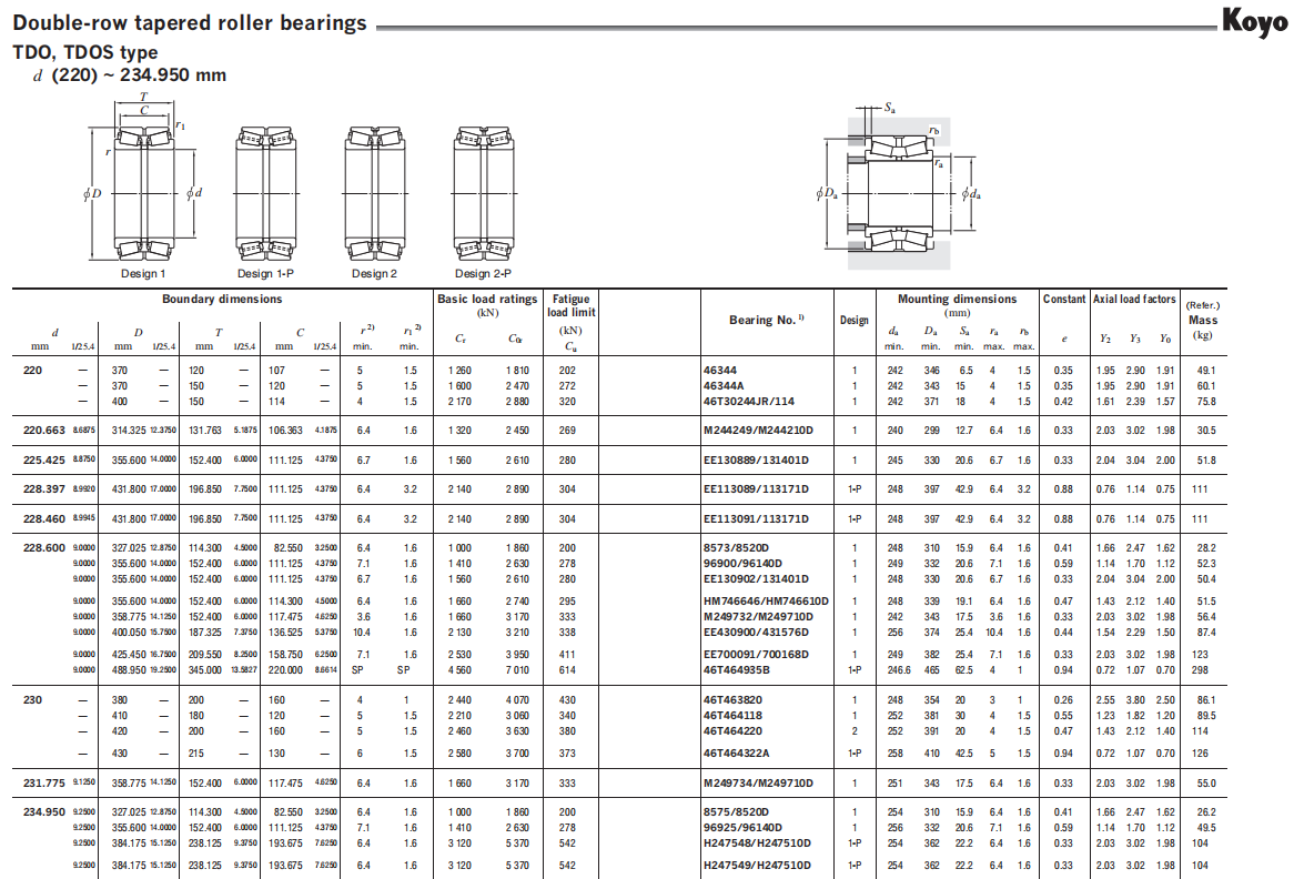 Koyo tapered roller bearings whose bearing numbers are suffixed by “J” are precision ground in accordance with the ISO 355 (Sub-unit, Metric Series) specifying