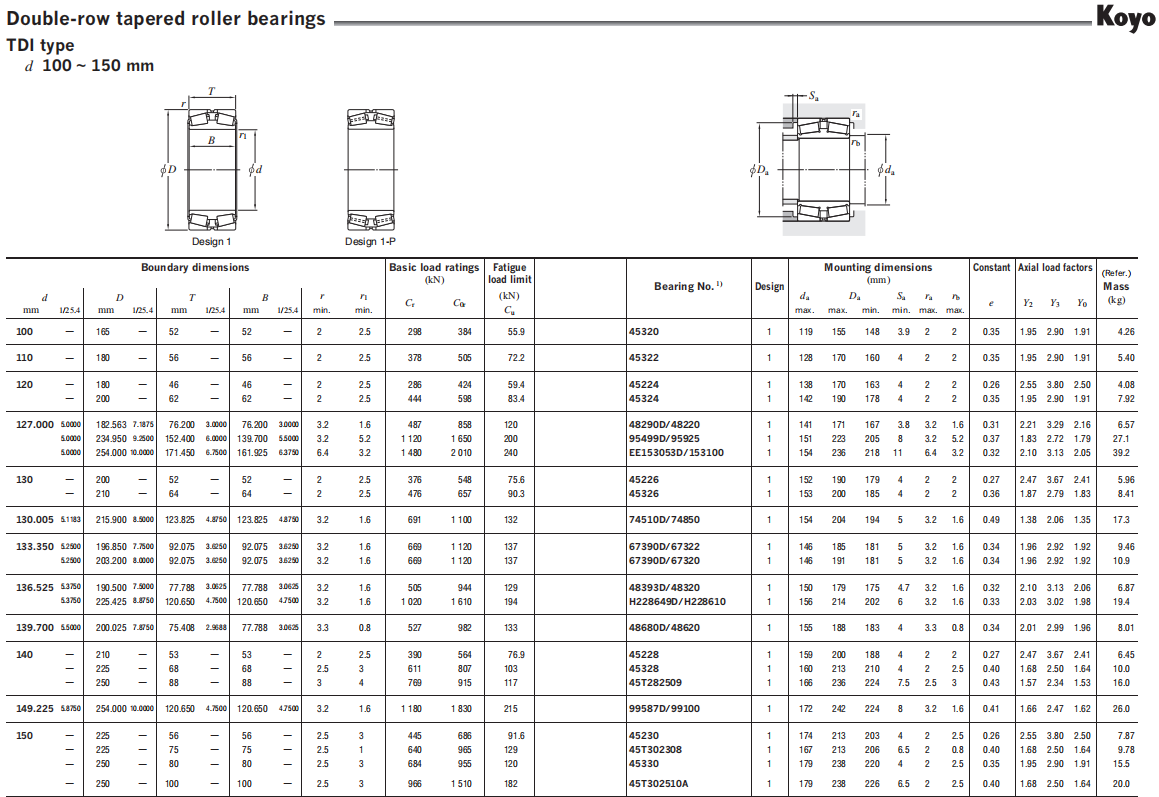 KOYO Double-row tapered roller bearings。