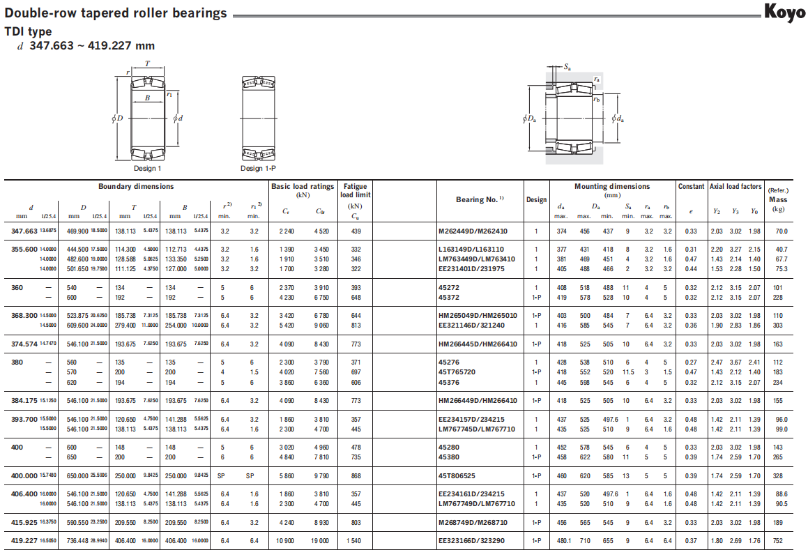 Koyo tapered roller bearings whose bearing numbers are suffixed by “J” are precision ground in accordance with the ISO 355 (Sub-unit, Metric Series) specifying