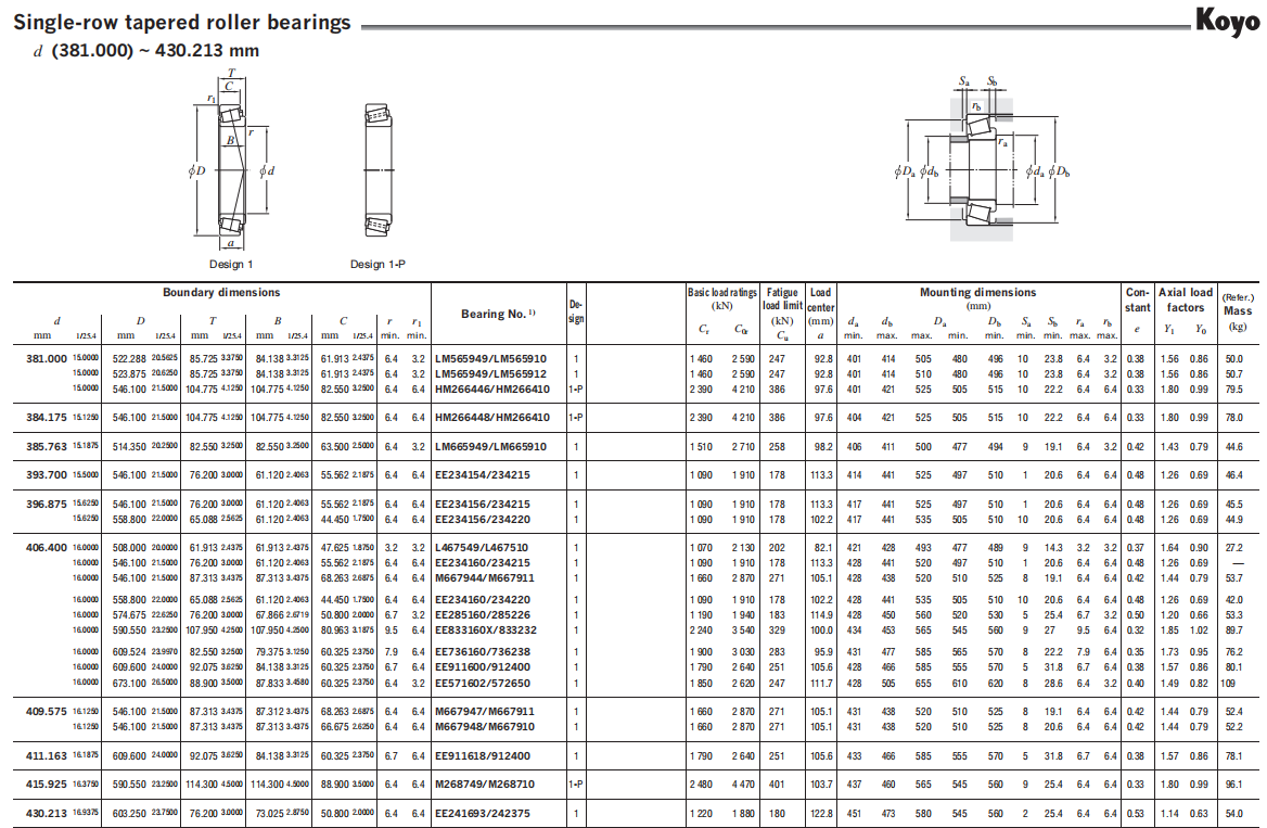 Koyo tapered roller bearings whose bearing numbers are suffixed by “J” are precision ground in accordance with the ISO 355 (Sub-unit, Metric Series) specifying