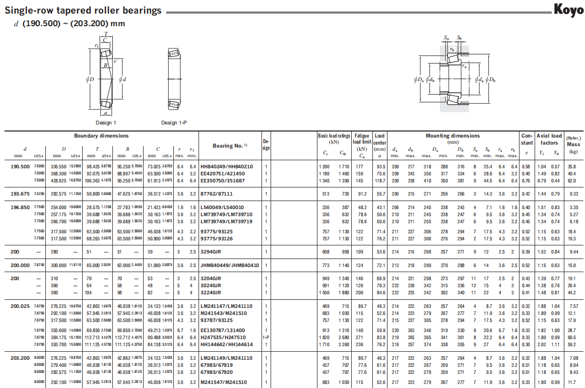 Koyo tapered roller bearings whose bearing numbers are suffixed by “J” are precision ground in accordance with the ISO 355 (Sub-unit, Metric Series) specifying