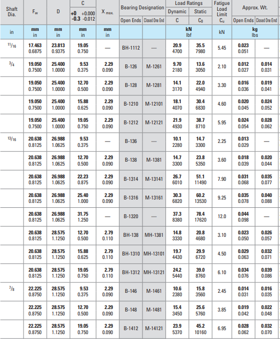 Fw D C X max. Bearing Designation Load Ratings Fatigue