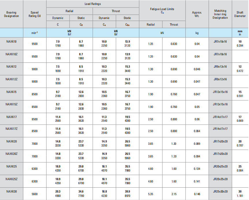 | NAXK15 | 9.7 | 12.6 | 1.9 | 0.76 | 0.047 | JR12x15x16 | 15 |