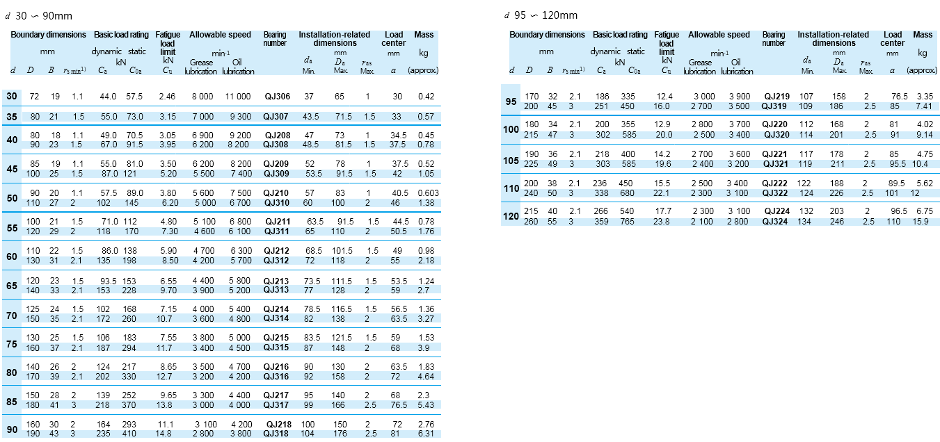 angular contact ball bearings, and Table 4 shows information on multiple-row angular contact ball