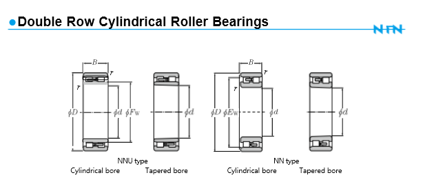 Among the various types of cylindrical roller bearings, E type and EA type have a high load capacity while maintaining standard boundary dimensions.
