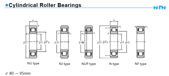 Among the various types of cylindrical roller bearings, E type and EA type have a high load capacity while maintaining standard boundary dimensions.