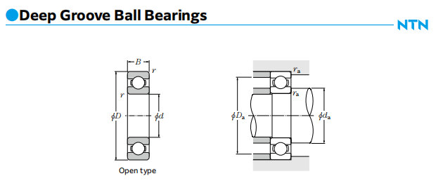 In addition to unsealed and unlubricated “open”bearings, NTN provides deep groove ball  bearings that are pre-lubricated with grease and enclosed by seals or shields. See section“11.