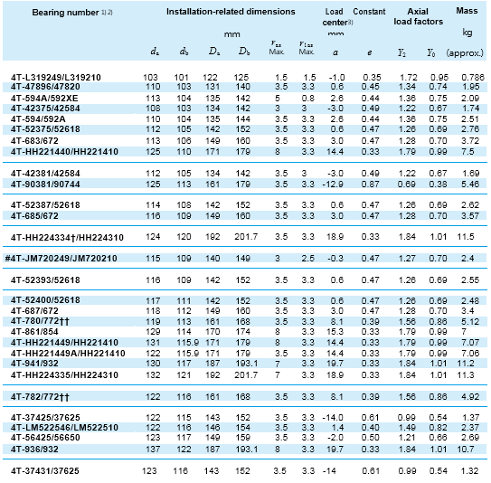 Bearing number 1) Installation-related dimensions Mass