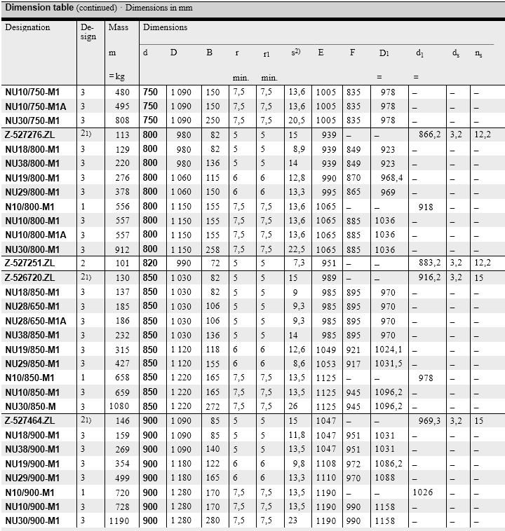 FAG Single row cylindrical roller bearings with cage are units comprising solid inner and outer rings and cylindrical roller and cage assemblies. The outer rings have rigid ribs on both sides or no ribs, the inner rings have one or two rigid ribs or are designed without ribs. The cage prevents the cylindrical rollers from coming into contact with each other during rolling. The cylindrical roller bearings have high rigidity, high radial load carrying capacity and, due to the cage, are suitable for higher speeds than full complement designs. Bearings with the suffix E have a higher capacity roller set and are thus designed for very high load carrying capacity.
