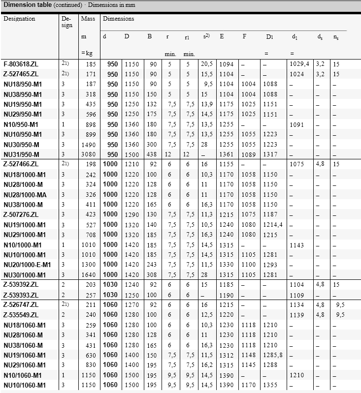 FAG Single row cylindrical roller bearings with cage are units comprising solid inner and outer rings and cylindrical roller and cage assemblies. The outer rings have rigid ribs on both sides or no ribs, the inner rings have one or two rigid ribs or are designed without ribs. The cage prevents the cylindrical rollers from coming into contact with each other during rolling. The cylindrical roller bearings have high rigidity, high radial load carrying capacity and, due to the cage, are suitable for higher speeds than full complement designs. Bearings with the suffix E have a higher capacity roller set and are thus designed for very high load carrying capacity.
