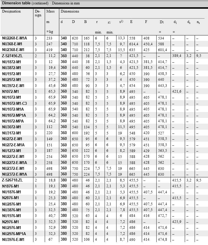 | Dimension table (continued) · Dimensions in mm | ||||||