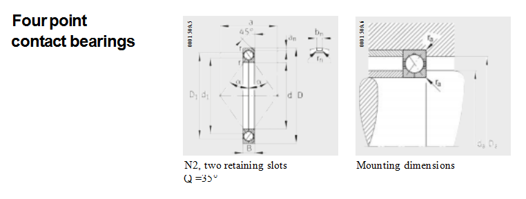 FAG four point contact bearings are single row angular contact ball bearings and therefore require significantly less space in an     axial direction than double row designs.