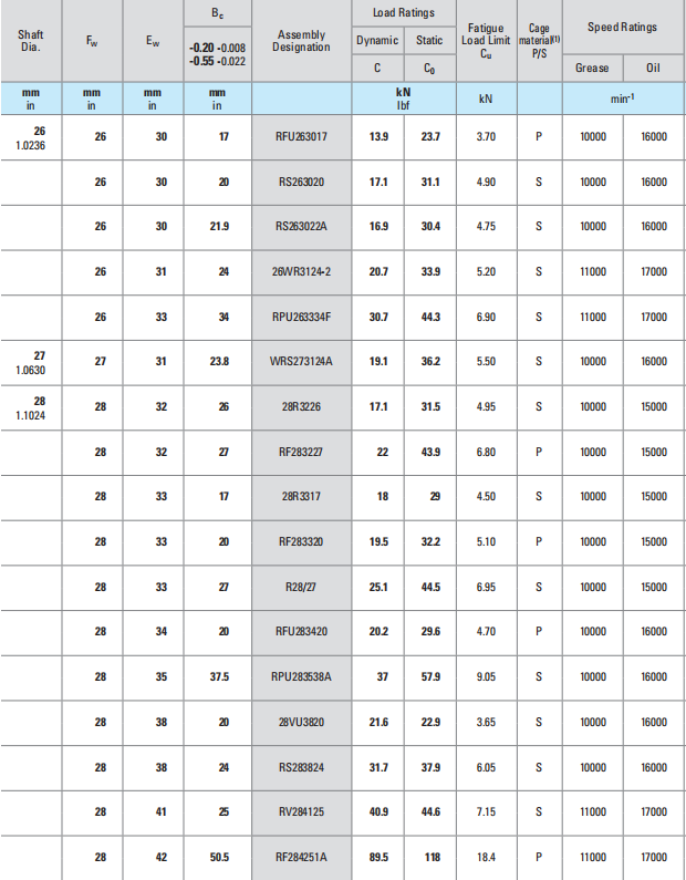 KOYO Radial needle roller and cage assemblies have a steel cage that provides both inward and outward retention for the needle rollers. The designs provide maximum cage strength consistent with the inherent high load-ratings of needle roller bearings. Accurate guidance of the needle rollers by the cage bars allows for operation at high speeds. Needle roller and cage assemblies have either one or two rows of needle rollers.