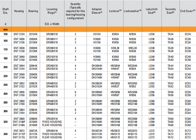 | 150 | SNT3134 | 23134K | SR280X10 | H3134 |