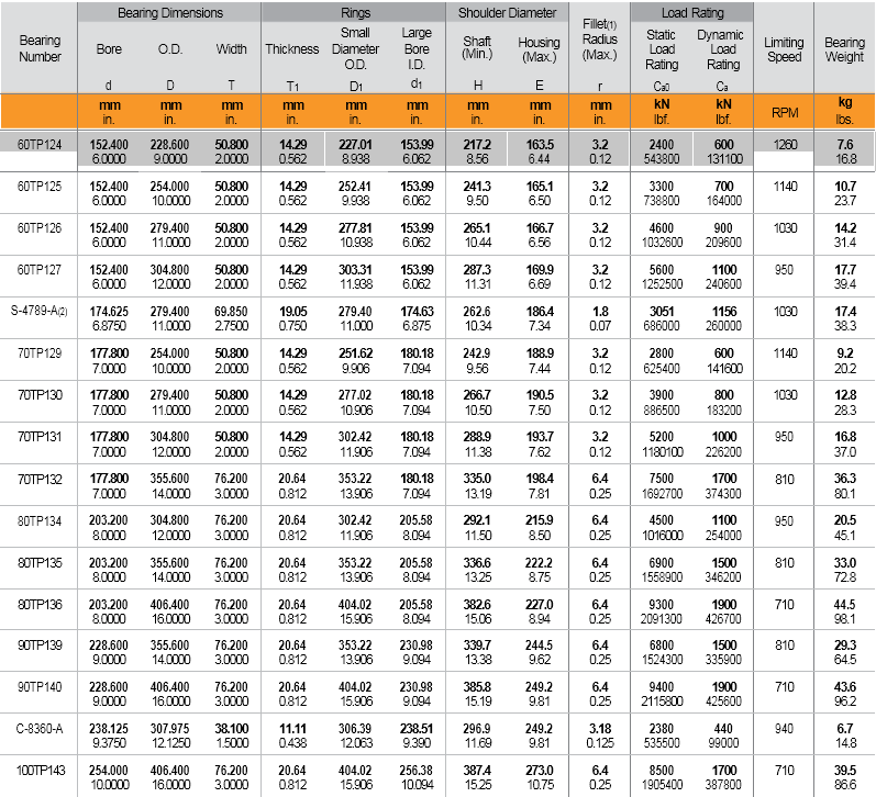 | Bearing | Bore O.D. Width | Thickness | Bearing Weight | ||