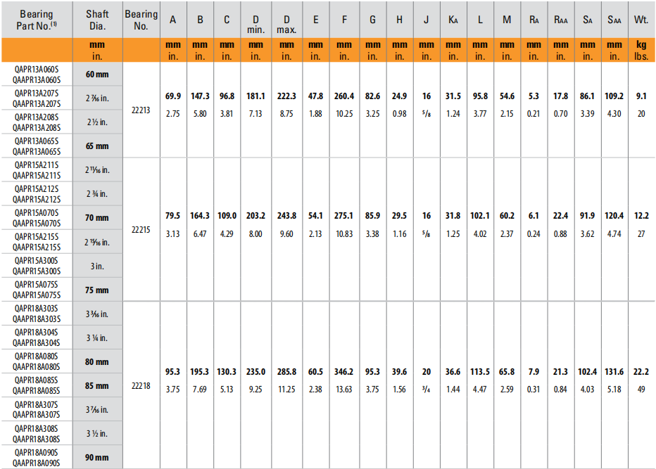 | QAPR15A300S QAAPR15A300S | 3 in. | 22215 | 3.13 | 6.47 | 4.29 | 8 | 27 |