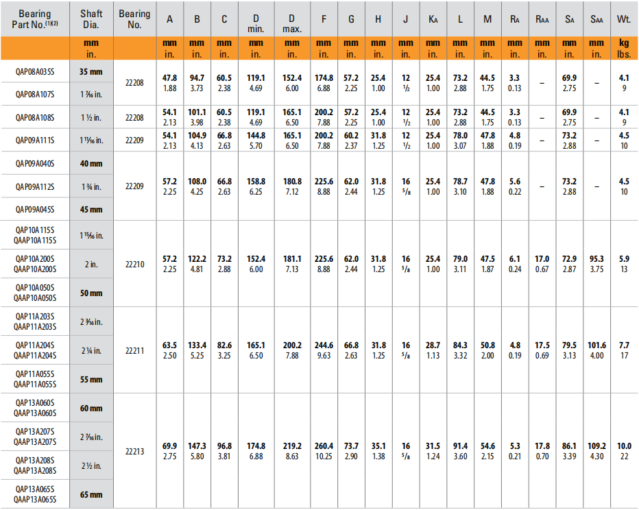 QAP10A200S  QAAP10A200S 2 in. 22210 57.2 122.2 73.2 152.4 5.9