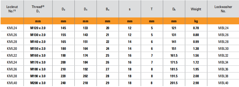 KML24 M120x2.0 145 133 20 0.78 MBL24