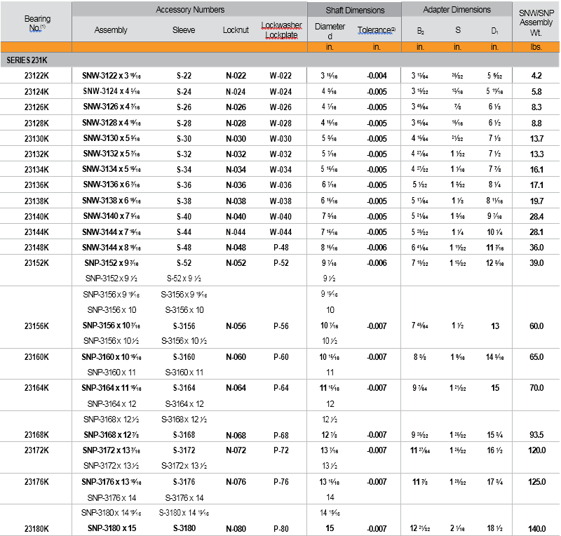 Bearing Accessory Numbers SNW/SNP