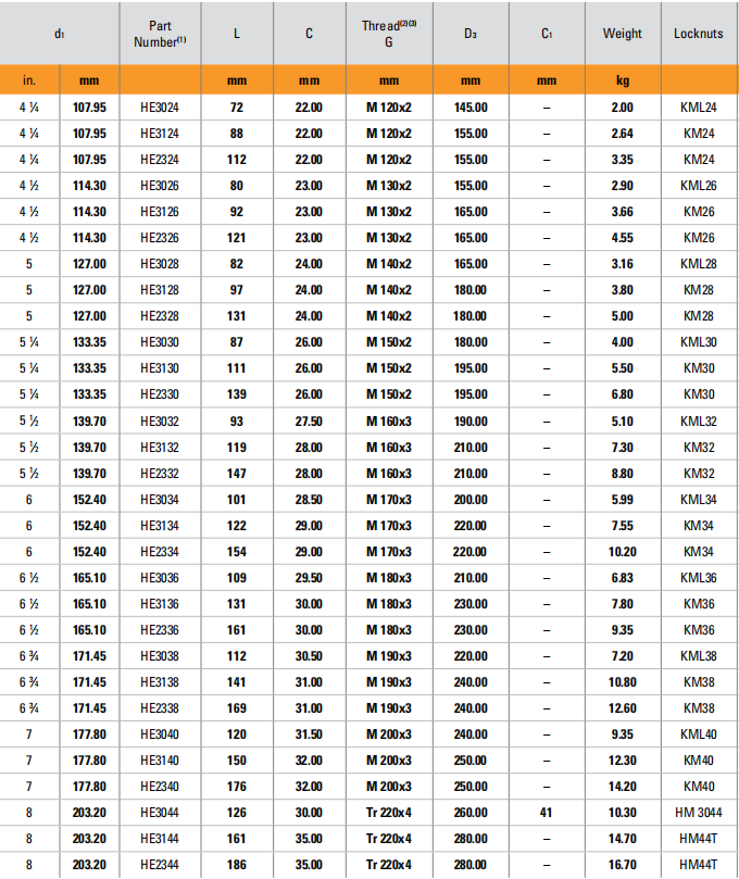8 203.2 HE3044 126 30 Tr 220×4 260 10.3 HM 3044