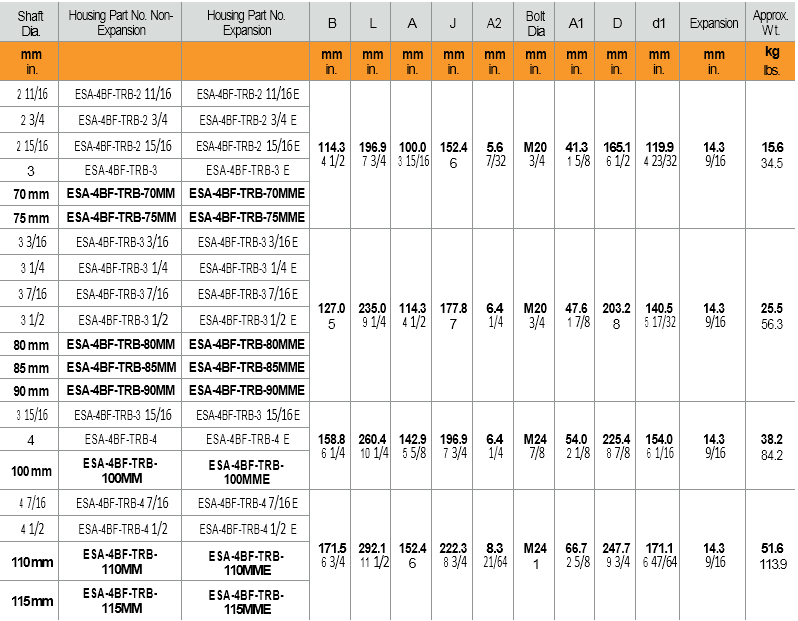 70 mm ESA-4BF-TRB-70MM ESA-4BF-TRB-70MME