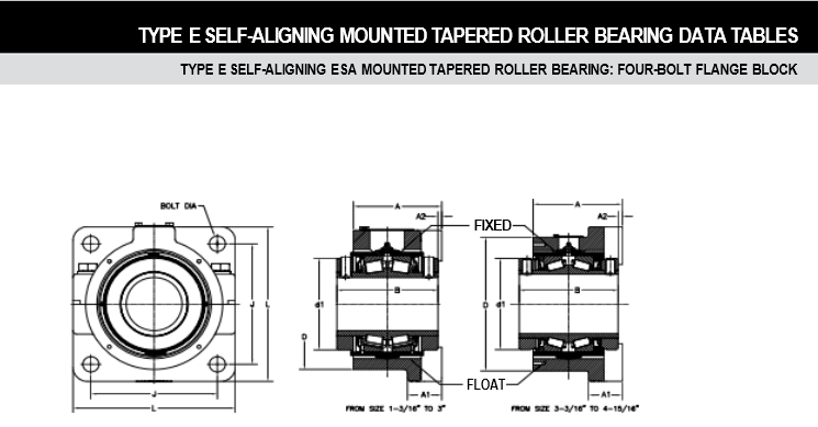 TIMKEN TYPE E SELF-ALIGNING MOUNTED TAPERED ROLLER BEARING