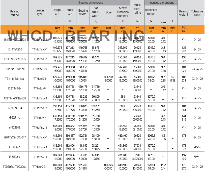 | Bearing Part no. | design Type | large O.d. | Bearing weight | ||||