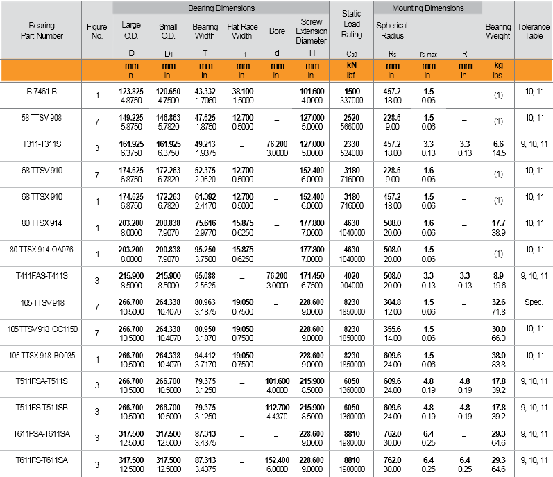 • Bearing of choice for axial positions in a wide variety of applications including oil well swivels, pulp refiners, extruders and piercing mill thrust blocks.