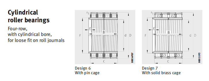 The bearings are suitable for very high radial loads and high speeds and are used principally in rolling mills and roller presses.