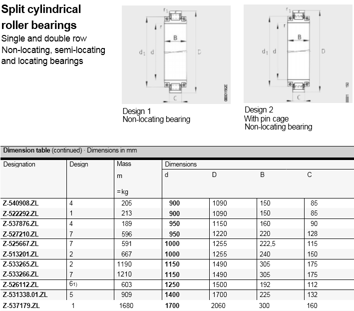 FAG Split cylindrical roller bearings are generally single row bearings with a cylindrical bore. These bearings comprise two inner ring and
